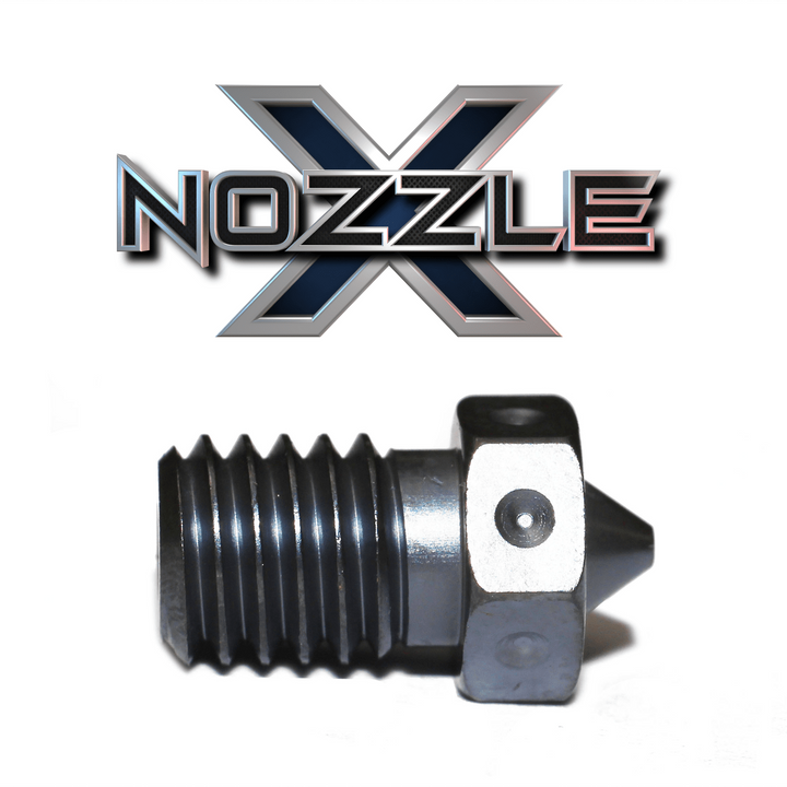Nozzle X ist die letzte Düse, die Ihr 3D-Drucker jemals benötigen wird. Hergestellt aus einem gehärteten Werkzeugstahl, wird sie anschließend vernickelt, um die Härte bei erhöhten Temperaturen zu erhalten. Zudem erhält die Düse eine WS2-Beschichtung, die ihre Haftungseigenschaften reduziert. Mit einer maximalen Temperatur von 500°C ist Nozzle X in der Lage, jedes druckbare Material* zu verarbeiten, von PLA bis hin zu kohlenstofffasergefülltem PEEK, ohne dabei abzunutzen.