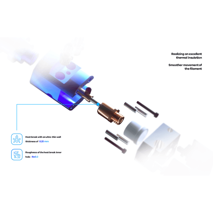 - Adoptiert eine Kühlwasserzirkulationsstruktur zur Wärmeableitung, die den Kühlkörper konstant auf Raumtemperatur hält und hervorragende Wärmeableitung bietet, um ein Verstopfen der Filamente zu verhindern