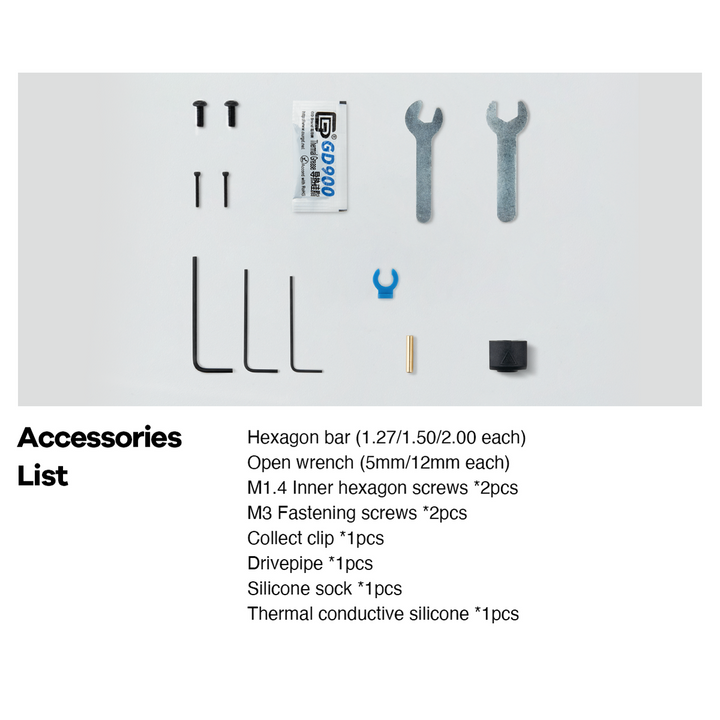 Im Lieferumfang des Phaetus Dragonfly Hot-End BMS sind folgende Zubehörteile enthalten: