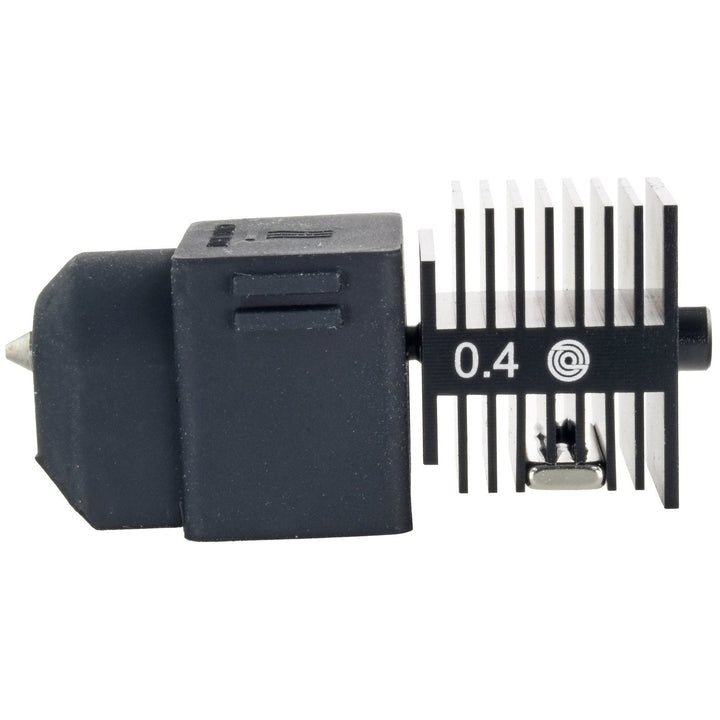 Das Hotend bietet optimiertes Wärmemanagement: Der Aluminium-Kühlkörper verhindert zuverlässig Verstopfungen, während das Titan-Heatbreak Hitze isoliert und einen klaren Extrusionspfad sichert. Der Kupfer-Heatblock garantiert schnelles, stabiles Aufheizen – auch bei hohen Druckgeschwindigkeiten. Mit der gehärteten Düse sind selbst abrasive Materialien problemlos verarbeitbar.
