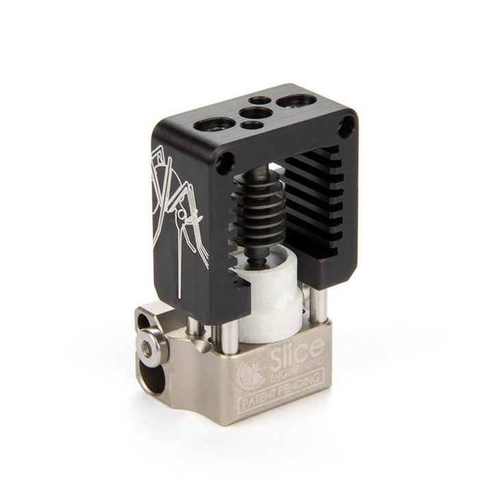 Das Slice Engineering Mosquito™ Magnum Hotend wurde neu überarbeitet und bietet nun eine verbesserte Wärmebrechung und einen optimierten Kühlkörper mit innovativen Funktionen. Der neue Wärmebrecher verfügt über einen verstärkten Hals und einen überarbeiteten Radiator, der Beschädigungen während der Installation oder Reparatur vorbeugt. Zudem ist er mit der gleichen WS2 Antihaftbeschichtung ausgestattet, die auch bei unseren Vanadium™ Düsen verwendet wird, um die Leistung mit PLA weiter zu verbessern. Der neue Kühlkörper hat eine breitere Öffnung für den Filamentweg, um besser mit gespleißtem Filament aus Multi-Material-Setups, wie dem Prusa MMU oder Mosaic Palette, umgehen zu können.